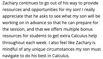 Monthly Parent Updates. Parents receive detailed monthly updates outlining their child’s progress, strengths, and next steps. You’ll always know exactly how your student is improving, what they’ve mastered, and what’s coming next.
